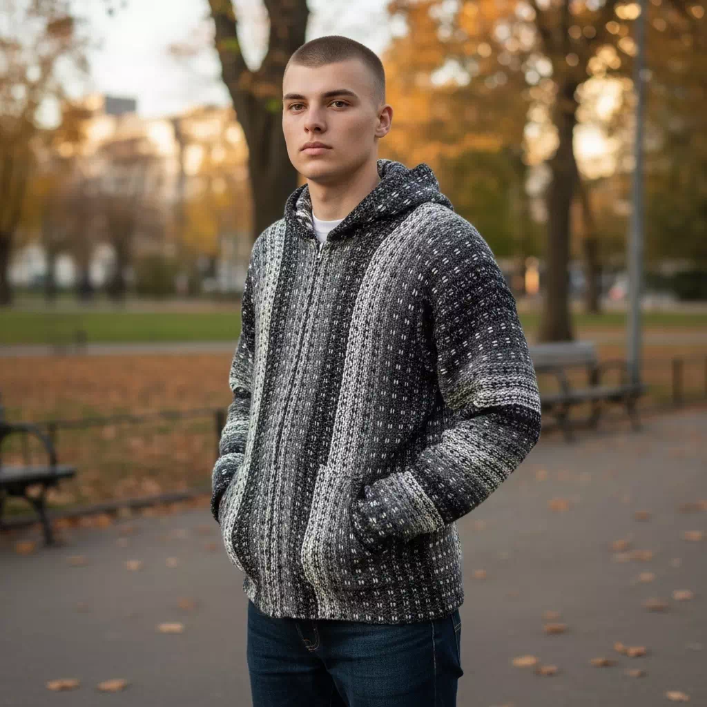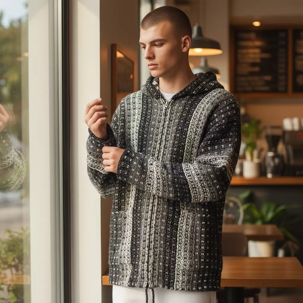 Perou Store vous présente cette très jolie Veste - "PUNTO". Avec fermeture éclaire, capuche et en laine de mouton. Réalisée dans les ateliers au Pérou, à la main, par des artisans locaux de la montagne.